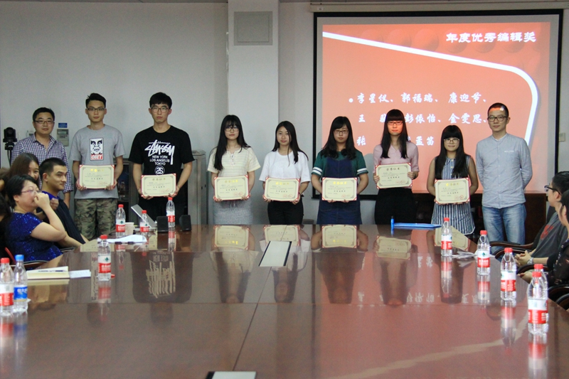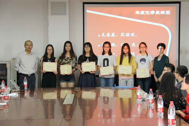 会上首先播放了庆祝《校园视界》开播一周年的短片。短片回顾了《校园视界》从诞生到发展的历程,展现了指导教师和编辑同学的工作点滴与个人风采。与会领导和老师们对《校园视界》过去一年的工作和成果进行了总结,并颁发了突出贡献奖、优秀主编奖、优秀编辑奖和编辑奖等奖项,共有20多位同学获奖。