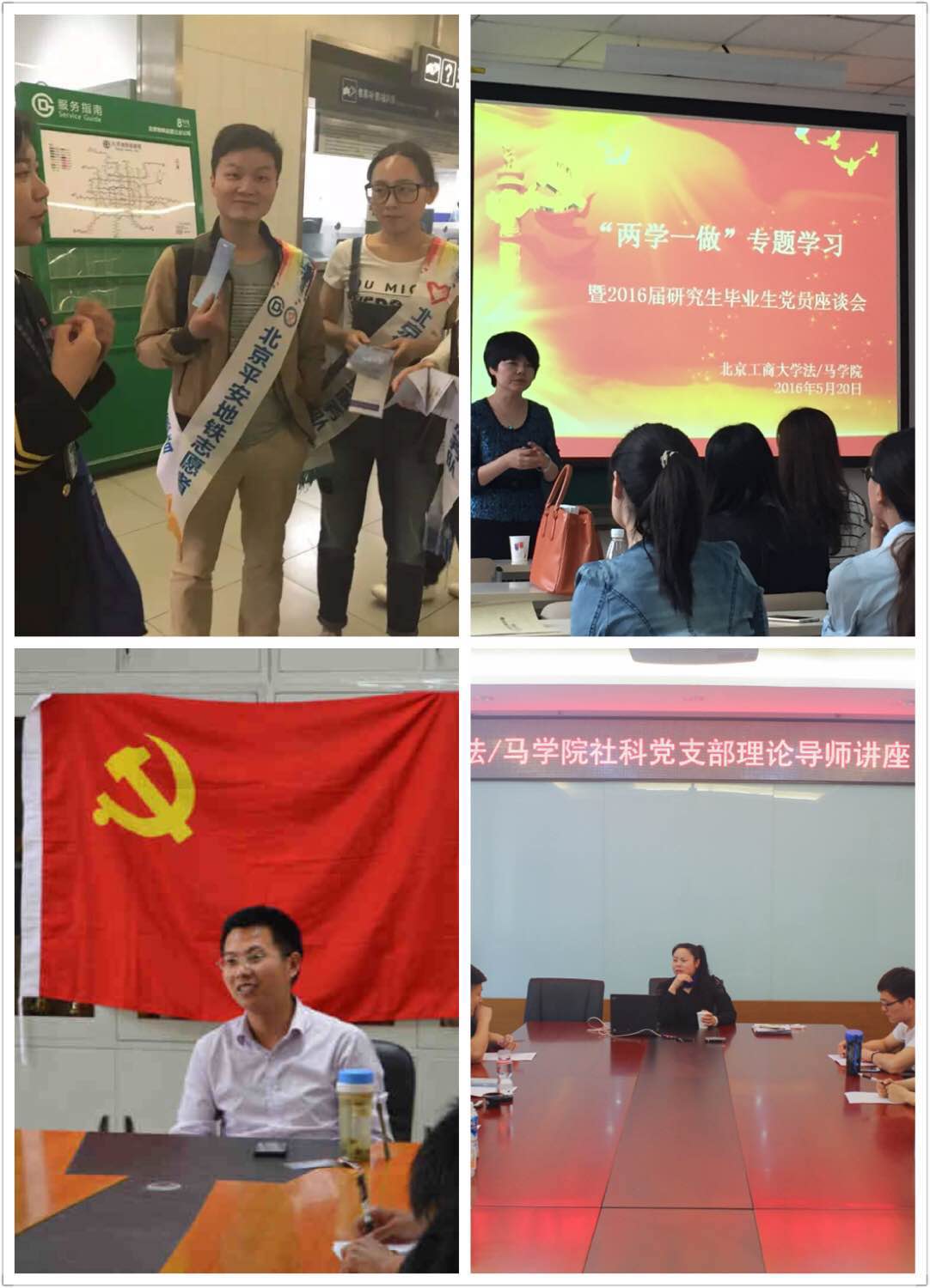 5月15日下午,14法学党支部与14法硕非法学党支部共十五人来到地铁八号线奥林匹克公园站进行志愿活动。同学们先是接受了地铁工作人员的简单培训,后被分配到闸机,自动售票机等四个岗位进行志愿活动。地铁八号线奥林匹克公园站人流量较大,在短短的两小时服务期内,志愿者们认真工作,帮助了很多买票有问题或是需要指路的乘客。活动结束后,同学们严肃的纪律性,认真的工作态度得到了地铁工作人员的好评。极大程度上的发挥了党员的先进性、榜样性,表现出了为人民服务的优秀党性修养。