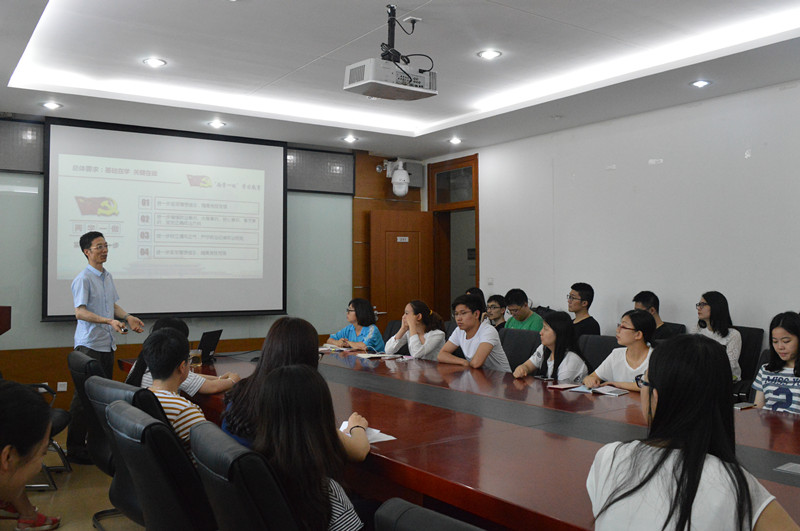 为贯彻落实《北京工商大学2016年党员理论学习计划》和《北京工商大学2016年学生党员先锋工程实施计划》精神,切实增强毕业生党员党性观念,6月20日下午,理学院毕业生党员“两学一做”专题培训在阜成路校区举行,培训会由理学院党委书记祝钧主讲,所有毕业生党员参加了培训。