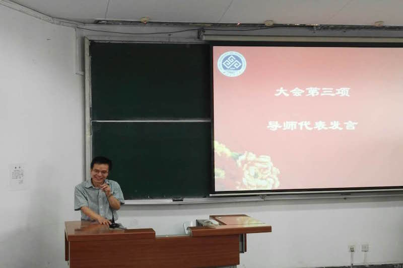 刘道远老师代表导师进行了精彩的讲话。他强调,作为一名研究生,不仅应当尊师敬长,尊重他人劳动成果,更因该自尊自爱,树立理想信念,要时刻对自己严格要求,做一个有格调、有情怀的人。