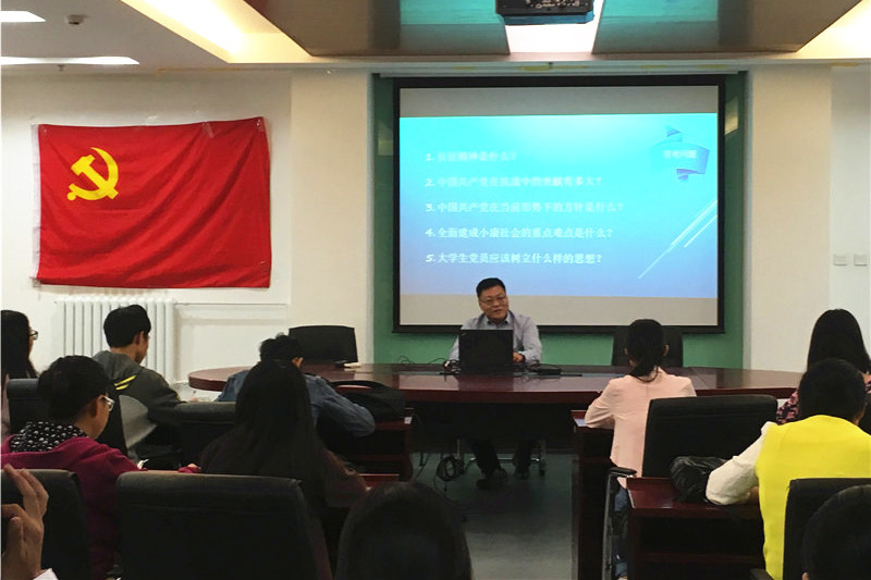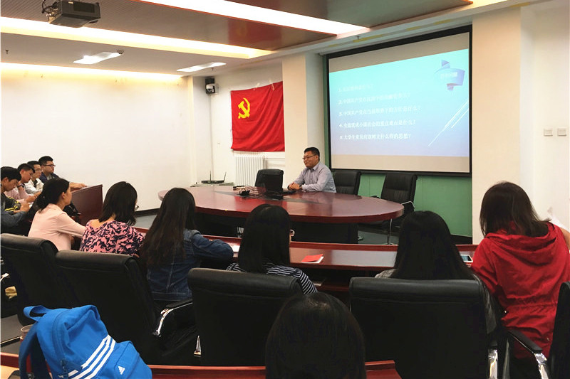 9月28日,商学院党委组织“两学一做”2016级研究生新生党员教育活动,全体新生党员参加(含2016级MBA新生党员)。商学院党委副书记樊江涛以《弘扬长征精神,肩负时代重任,全面决胜小康》为主题,开展了本学期的第一次党课。