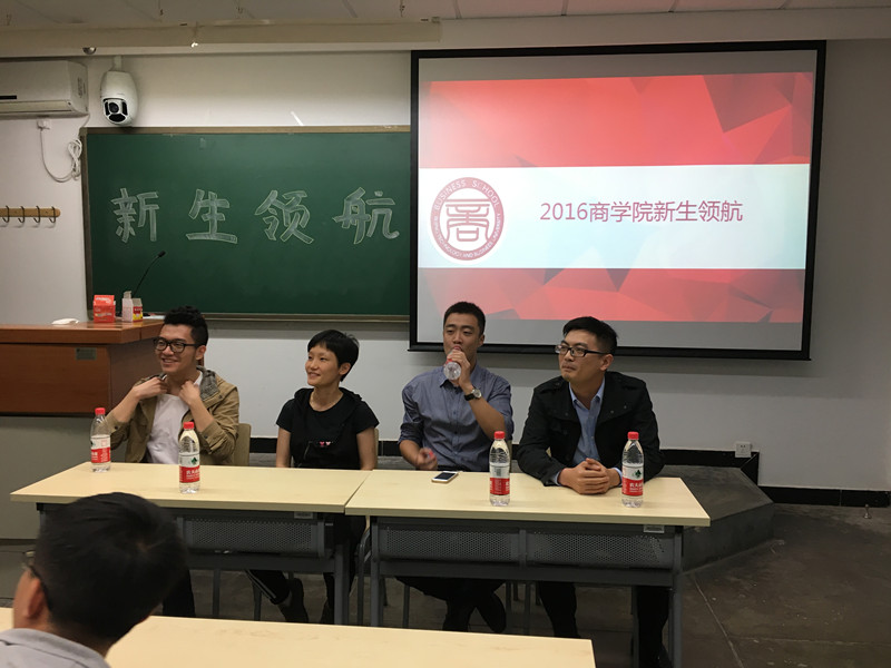 为使16级研究生更快更好地适应学习生活,树立更加明确的目标,针对研究生阶段学时短、任务重、就业压力大等特点,商学院研究生会于9月27日晚举办新生领航沙龙活动。邀请中国人民大学商学院财务与金融系博士生王储、五矿集团风控经理、极速南瓜品牌管理公司创始人闫擎一、中国农业银行支行行长、中国农业银行北京分行HR,为商学院研究生指点学业、规划生涯。