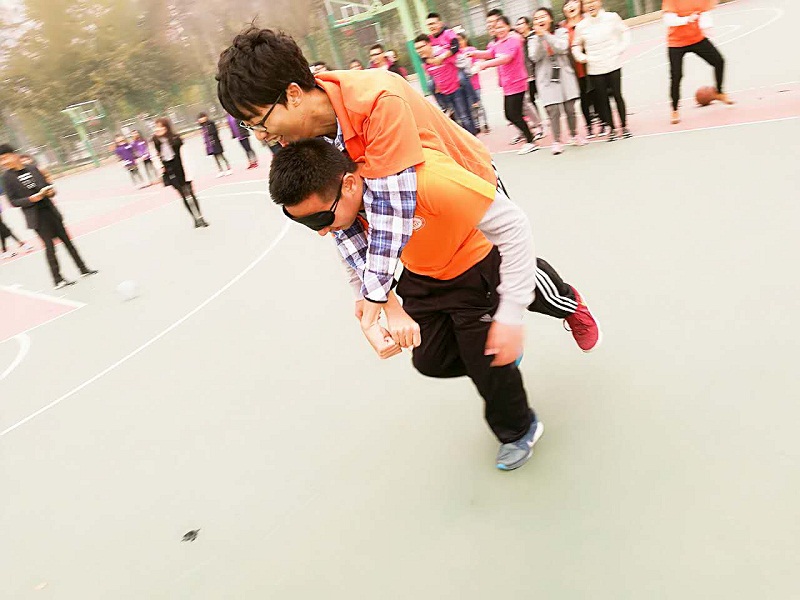 运动会设计了简单有趣的六人七足,紧张刺激的背靠背夹篮球,配合默契的“你是我的眼”等众多项目,吸引了很多学生参与和观看。
