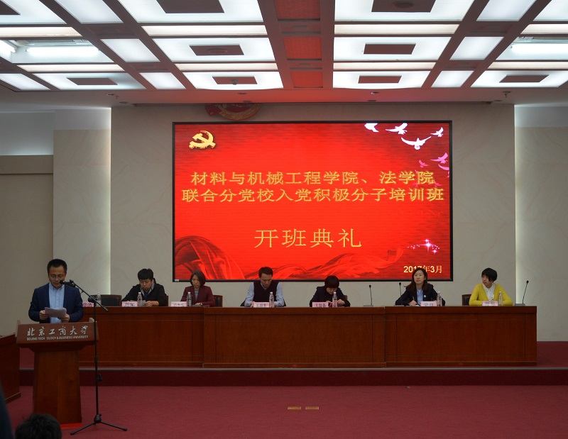 3月15日,材料与机械工程学院、法学院联合分党校入党积极分子培训班开班典礼在良乡模拟法庭举行。材料与机械工程学院党委书记王向东、法学院党委书记文四英、材料与机械工程学院党委副书记杨秀萍、两个学院党委秘书、辅导员代表及240余名党校学员参加了典礼。典礼由材料与机械工程学院团总支书记邓浩主持。