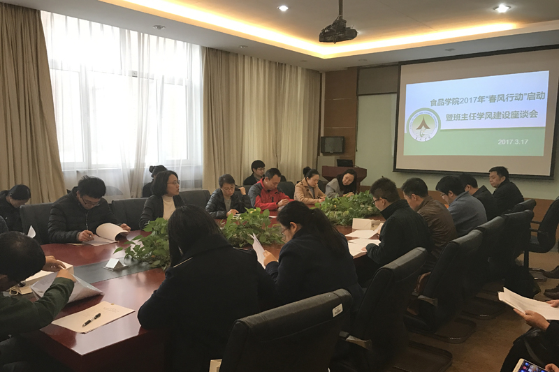 为加强学风建设,营造良好学习气氛,3月17日,食品学院在阜成路校区召开2017年春风行动启动暨班主任学风建设座谈会。学院党委书记何猛出席。会议由学院党委副书记胡燕霞主持,学院全体班主任、辅导员参加了会议。