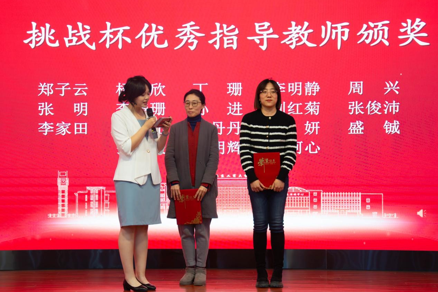 王海伟为挑战杯优秀指导老师颁奖。