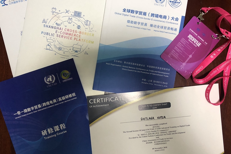 11月6日至9日,我校商学院硕士留学生斯维特拉娜(SVITLANA KUTIA)和斯蒂芬(NZIENGUI MOUBAMBA GERAUD STEPHANE)经过层层选拔,从500名候选人中脱颖而出,代表我校与其他13名从清华等高校选拔出来的留学生一起,参加了的全球数字贸易(跨境电商)大会和一带一路数字贸易(跨境电商)高级研修班。