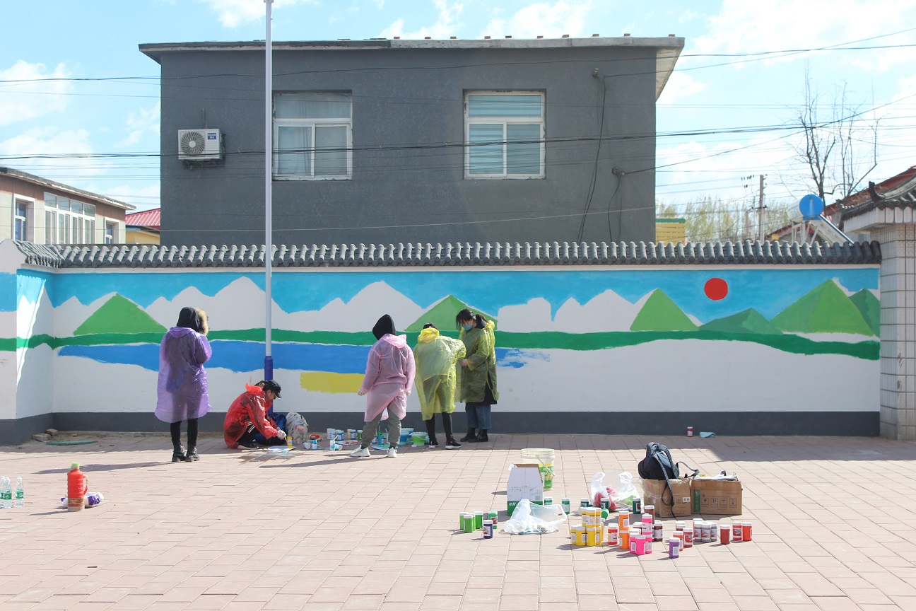 “在本次墙绘实践活动中,我感受到了艺传学子在新时代背景下展现出的新风貌,特别感谢同学们不畏艰苦,在大风夹杂着沙尘无情呼啸的天气下顺利完成了墙绘。二站村文化广场原本的白墙,在艺传学子的妙笔下变成了绿水青山的画卷。”周国强说道。