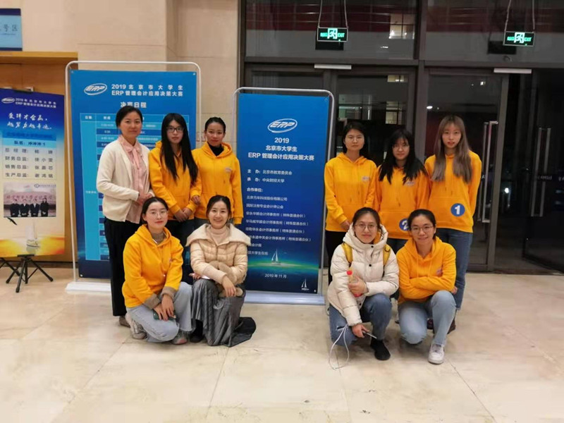 2019年北京市大学生ERP管理会计应用决策大赛由北京市教育委员会主办、中央财经大学承办,是北京市首个官方性质的经管类学科竞赛,共有来自北京市27所高校的691支队伍报名参赛,我校共有5支队伍进入总决赛。总决赛包括ERP管理会计决策应用和经营成果展示两个环节。在决策应用阶段,每支队伍的4名成员分饰不同角色,分工协作,分别完成年度目标制度分解、年度预算编制、一二季度预算执行、预算分析与调整、三四季度预算执行、预算考核等环节,将学到的管理会计、财务会计、管理学等知识综合运用到商业场景中,并根据商业环境随机应变,展现了过硬的专业素质。