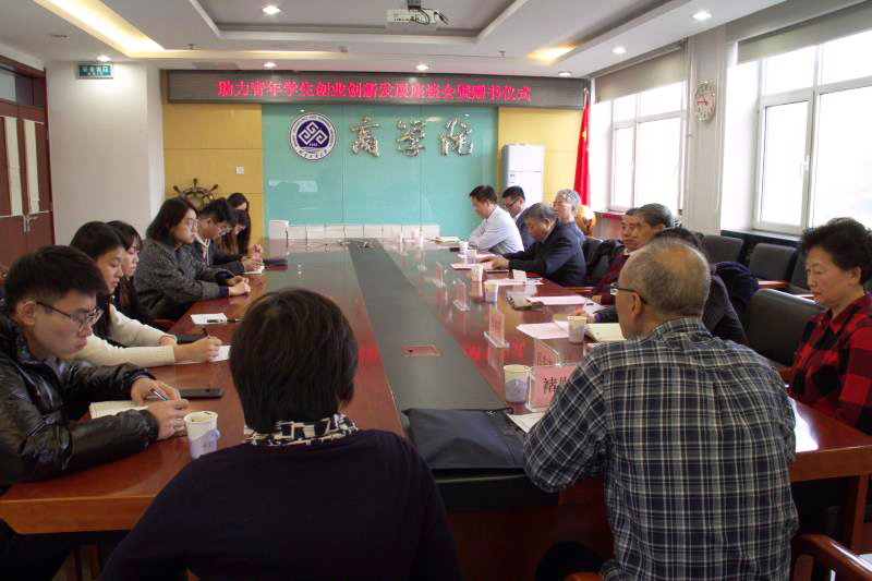 为助力青年学生成长成才,11月22日,学校关心下一代工作委员会和离退休工作处联合商学院、继续教育学院、校友会在阜成路校区共同举办“助力青年学生创业创新发展座谈会暨赠书仪式”。我校知名校友、恒华房地产开发集团董事长邝小洋,我校退休教师、原机械工业管理干部学院会计系主任祝春敖老师出席活动,学校关工委副主任许连明、学校关工委理论组组长吴建刚、商学院党委书记张春萍、副书记樊江涛、继续教育学院院长施枫、学校校友会秘书长吕东燕以及商学院部分本科生、研究生参加活动。活动由离退休工作处副处长褚财宽主持。