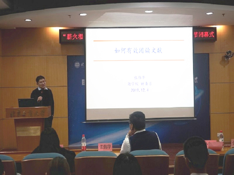 “薪火相传,引航指路”学术交流会中,商研会前期对研究生做学术方面的困惑采用问卷星的方式进行调研,根据关注度选出论文写作、会计学术研究心得分享和如何有效阅读文献三个问题。工商管理朱蓉向同学们分享了论文写作的心得体会、技巧与要点。她强调了从审稿人角度来审查论文并找出文章不足之处的必要性。会计系张宏亮分享了从入门到精通的会计学术研究心得。他指出研究过程是从一篇规范的外文文献读起到翻译,临摹,文献精读,换新的变量、环境、方法研究,到创新的过程。张伟华分享了如何有效阅读英文文献的经验。重点介绍了读文献的方法和要点,比如要认真区分外生变量和内生变量,理解过去制度和数据的变化,理解今人思想和观念的变化以及假设的逻辑和检验的过程等。