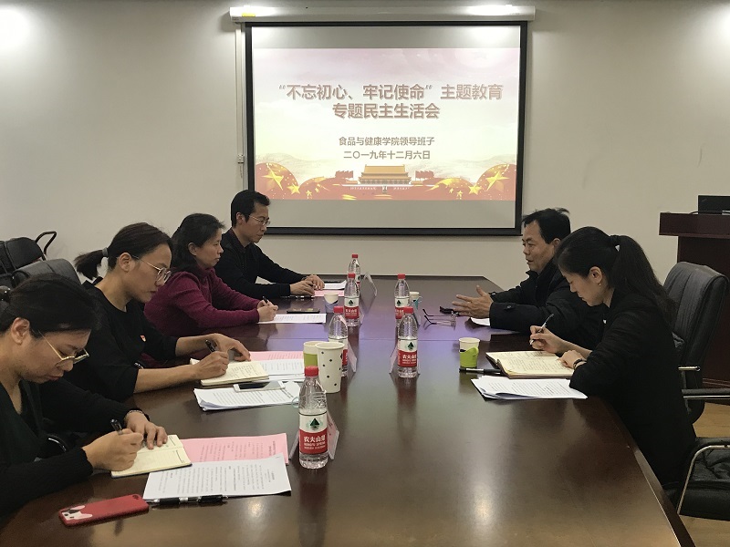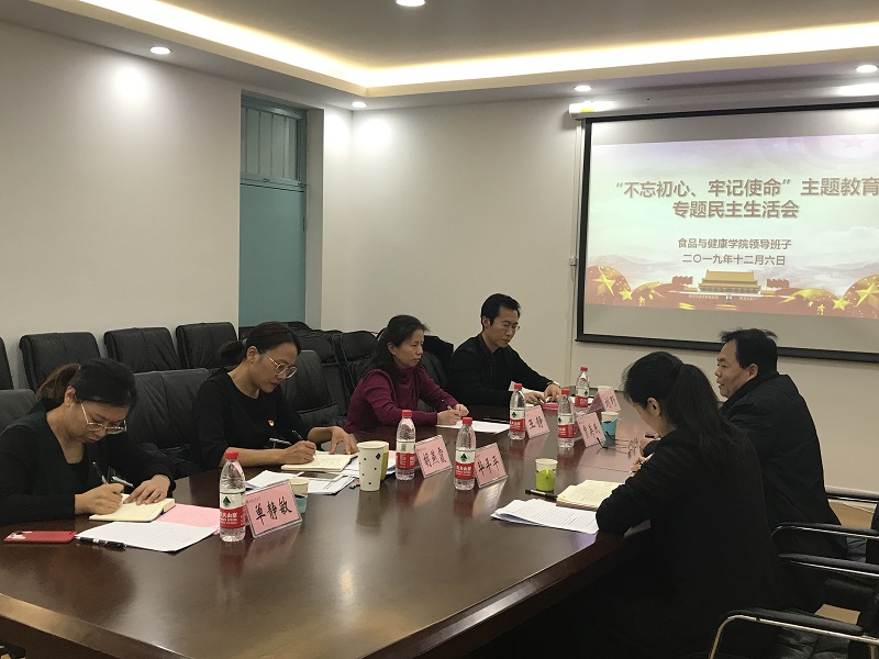 12月6日,食品与健康学院领导班子召开“不忘初心、牢记使命”主题教育专题民主生活会。学校党委常委、副校长贾英民出席并做点评讲话。学校主题教育第二指导组副组长、人事处副处长毕平平和学院领导班子成员参加会议。会议由学院党委书记胡燕霞主持。