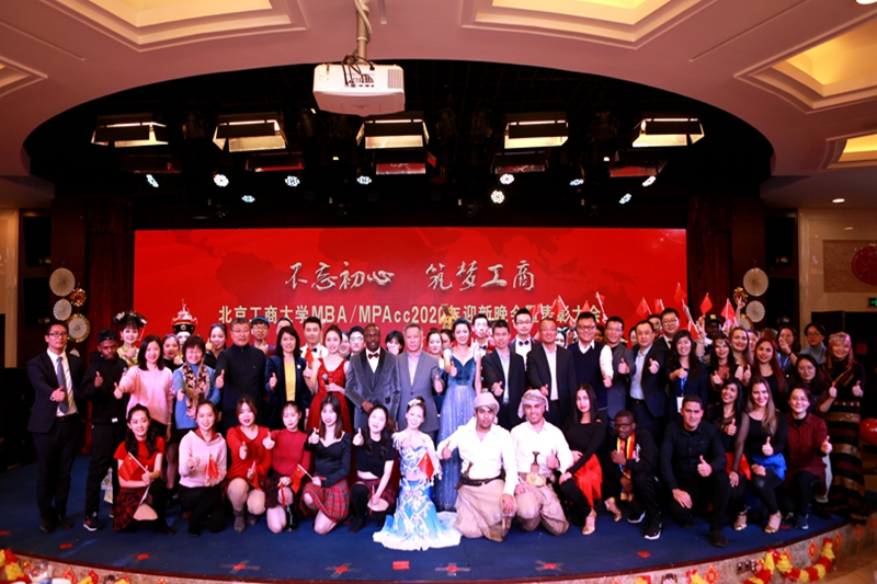 交接仪式后,文艺演出正式开始。激情洋溢、魅力四射的开场舞拉开了演出序幕。诗朗诵《共聚首北工商》展现了莘莘学子情系北工商、立志做栋梁的精神风貌。优雅的傣族舞、悠扬的葫芦丝、动听的手风琴,一个个精心编排的节目充分展示了MBA与MPAcc同学的才华,赢得了台下观众热烈的掌声。同学们带来的汉服秀展示《礼仪之邦》华美绚丽,展现了中华服饰文化的博大精深。来自古巴、也门、刚果、利比里亚等国家和地区的16位留学生的舞蹈将晚会气氛推向高潮。今年是伟大的祖国70华诞,大家共同为祖国献上一首赞歌,在《我和我的祖国》大合唱中,迎新晚会圆满落下帷幕。