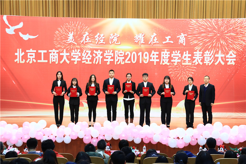 为表彰先进,树立榜样,12月25日,“美在经院 耀在工商”经济学院2019年度学生表彰大会在良乡校区隆重召开。学生处处长吕良、经济学院党委书记吕素香、党委副书记杜亚辉,副院长宁威,院长助理于海龙,各系主任,专业老师,辅导员,19级本科生和研究生以及获奖代表800余人共聚一堂,历数2019年取得的丰硕成果,见证学生们的努力、经院的奋进、工商的荣耀。大会由学院团委书记单紫薇主持。