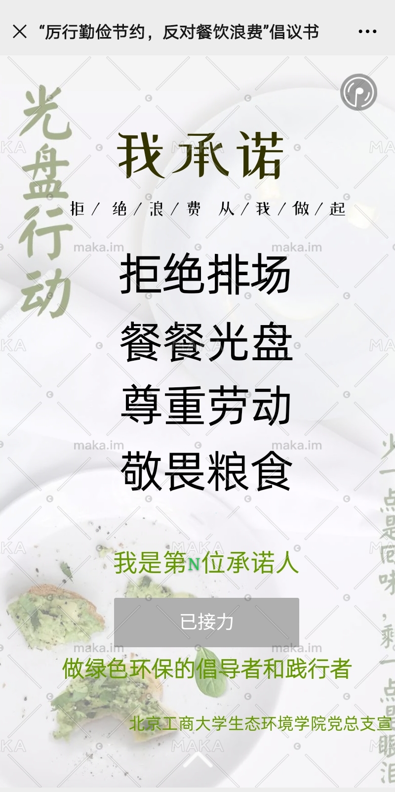 近日,习近平总书记对制止餐饮浪费作出重要指示,强调要坚决制止餐饮浪费行为,切实培养节约习惯,在全社会营造浪费可耻、节约为荣的氛围。为深入贯彻落实习近平总书记重要指示精神,弘扬勤俭节约传统美德,引领节约用餐良好风尚,倡导文明健康生活方式,生态环境学院各班结合本专业特点,组织召开了“厉行勤俭节约,拒绝餐饮浪费”主题班会。