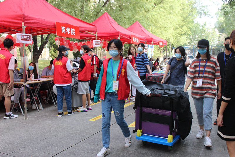今年由于疫情影响,家长不能陪同学生入校报到。9月13日,商学院组织的110余名志愿者一大早就开始热情澎湃地迎接新同学,帮助搬运行李、办新生入学手续,并提供一站式送行李到宿舍的暖心服务。志愿者们用他们最热情的接待和最周到的服务诠释了“奉献、友爱、互助、进步”的志愿精神,赢得了新生和家长的赞誉,有力地保证了迎新工作的更好开展。商学院为新生设立独具特色的迎新展板、欢迎横幅,并通过发放体贴、详实的生活贴士,安置清晰、完整的校园地图易拉宝,来帮助新生更快适应校园生活。商学院特有的吉祥物商院虎在校园门口迎接新生,与新生们亲密互动、合影留念,记录下他们进入大学校门的第一张笑脸。学院的“萌新日记”拍照留念处使初来乍到的新生倍感亲切,用温暖,和睦,积极的氛围深深浸润学子心田。
