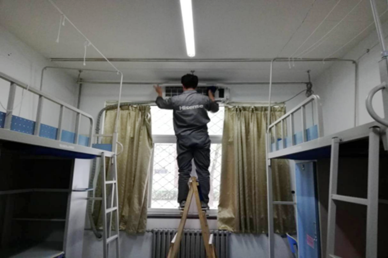 考虑到宿舍内的空调因许久未使用落满灰尘,宿舍管理科组织对两校区4509间宿舍的空调开展清洗工作,给学生营造一个整洁、舒适的居住环境,让许久未归的学子感受到来自学校的关心和温暖。