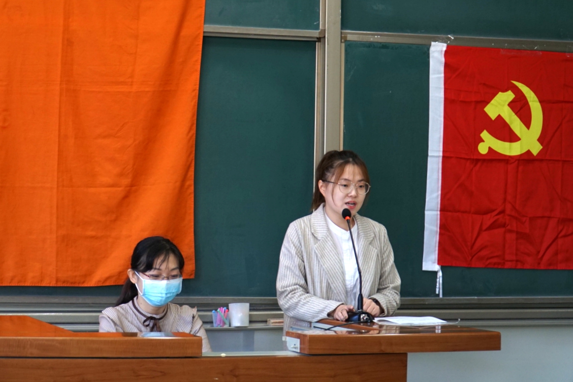 来自法学173班的党员武晶晶结合自己的入党经历,以本科时期参与学生工作的感悟为切口,向同学们分享了自己的心路历程。她表示,可以在这个时代入党,她感到十分幸运与自豪。同时,她呼吁同学们加入共产党,拥有一个有信仰、有梦想、有奉献的人生。