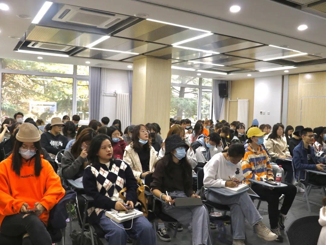广告系校友专业交流会会于艺A102举行,学院党委书记高丽华、中国传媒大学国际广告研究院副院长张翔、广告系退休及在任教师、各级校友,以及在校学生40余人与会。会议由广告系主任丛珩主持,
