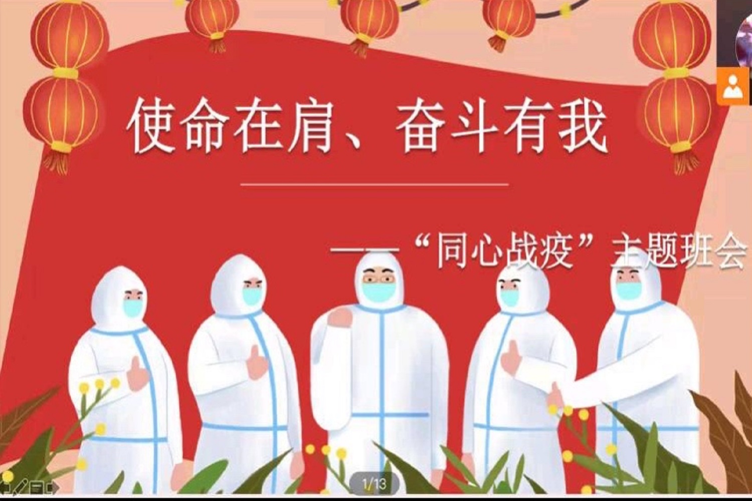外国语学院商务英语17班以“抗疫情、讲故事、学精神”为主题开展班会,同学们回顾了疫情期间大家积极参与社区执勤、为湖北一线的医护人员募捐善款物资、制作为疫情发声主题作品10件、班级同学通过各种渠道为抗击疫情募捐善款共计1791元等抗疫故事。全班同学认真学习了抗疫一线先锋战士——北京积水潭医院呼吸科主任助理程洋医生的事迹,在抗击疫情的战场上,可歌可敬的医护人员们冲锋陷阵,这样的奉献精神深深感动了同学们,当代大学生应自觉把个人的理想追求融入国家和民族的事业中,奋发有为、勇敢担当。班会还特别连线了远在爱尔兰交换的苏英满和李曦,班级同学对他们的近况表示关心,两位同学表示由于目前还身处疫情比较严重的地区,一定会主动做好防护,在重视学业的同时也会照顾好自己的身体,永远记得背后有强大的祖国。