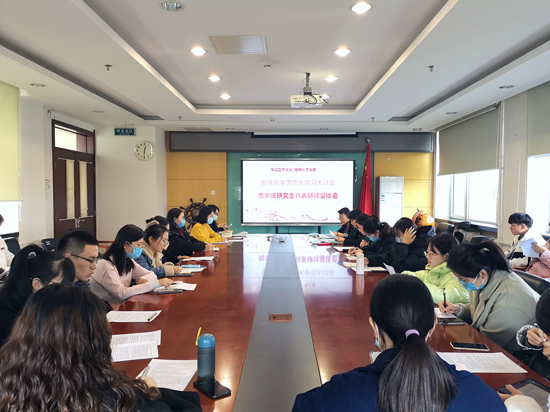 为深入推进教育教学思想大学习大讨论,开展广泛而充分的交流研讨,11月26日,商学院召开研究生学生代表教育教学大学习大讨论专题研讨座谈会。商学院党委书记张春萍,党委副书记张倩,辅导员赵丽红、赵杰,研究生学生党支部书记、班长共同出席会议。会议由张倩主持。