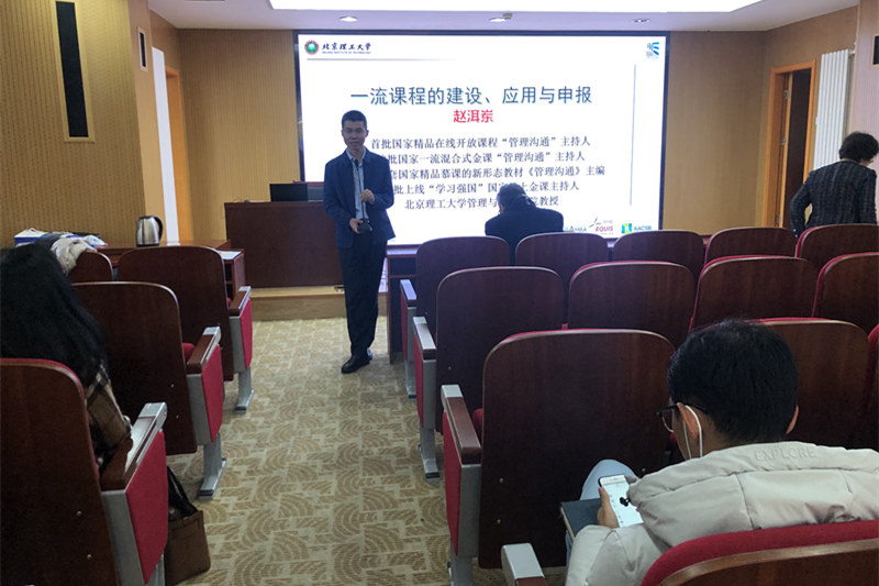 12月4日下午,商学院邀请北京理工大学管理与经济学院教授、首届北京市青年教学名师赵洱岽教授为全院教师作题为《一流课程的设计、建设和应用》的专题讲座。赵洱岽是首批国家精品在线开放课程“管理沟通”主持人,近年来为300多所高校做慕课、混合式教学、课程思政等专题报告等。他以一流本科课程建设为出发点,分析一流本科课程建设背景,深度解读了教育部关于教育教学相关重要会议及文件精神要义,强调要淘汰“水课”、打造“金课”,合理提升学业挑战度、增加课程难度、拓展课程深度,切实提高课程教学质量,将价值塑造、知识传授和能力培养三者融为一体,全面推进课程思政建设;既要创新课堂教学模式,又要推进现代信息技术在课程思政教学中的应用。赵洱岽着重介绍了“3-4-6-3”在线开放课程教学设计的方法,包括教学理念、教学目标、教学体系及教学保障措施等多个环节的组织方式,并分享了慕课的录制经验。最后,赵洱岽指出,教材和课程的混合式教学体系,要以激励学生“参与式学习”为核心目标,建立“线上+线下”的融合体系,统筹“课前+课中+课后”的三阶段学习任务,并强调教学目标要与立德树人相融合,教学内容要与思政精神相融合,教学方法要与信息技术相融合。通过此次讲座,广大教师更加清楚地了解了“一流课程”建设的内涵,为建设具有商科特色的“金课”,加快推进课程优化升级,推动课堂革命起到了积极的作用。