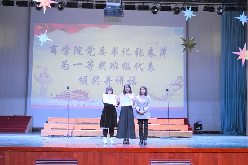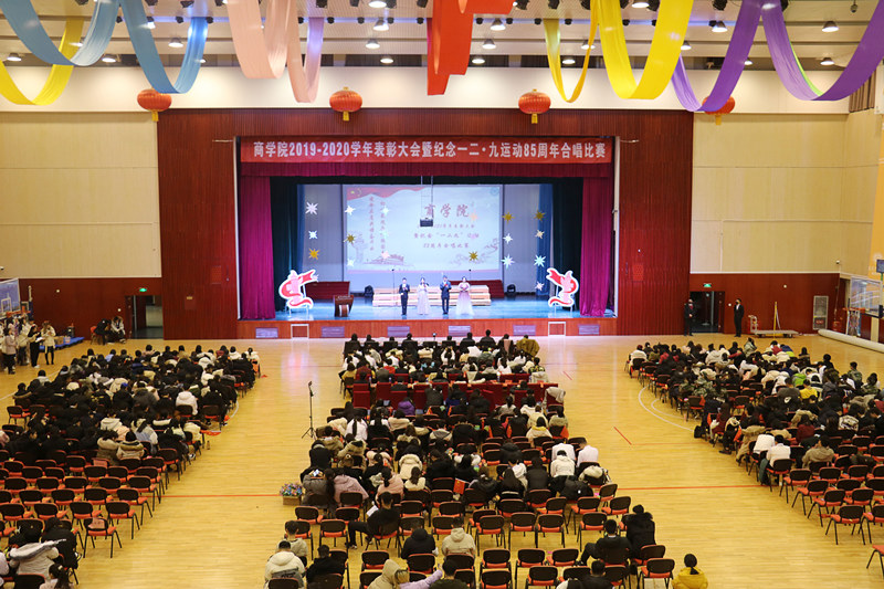 为弘扬爱国精神,增强班级凝聚力,丰富校园文化生活,12月6日,商学院在良乡校区举办2019-2020学年表彰大会暨纪念“一二·九”运动85周年合唱比赛。商学院党委书记张春萍,党委副书记张倩,副院长孙永波、张伟华,组织员祁飞,团委书记赵杰,全体2020级班主任、辅导员,以及2020级本科生以及受表彰学生代表参加了本次活动。邀请校团委曹璐婷、体育与艺术教学部孙凯、丁璇担任评委。
