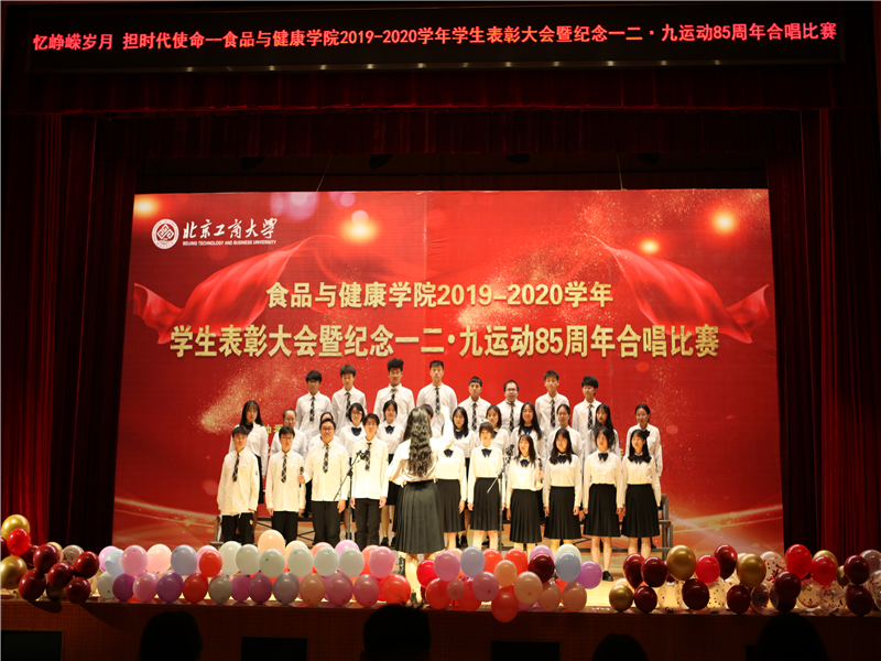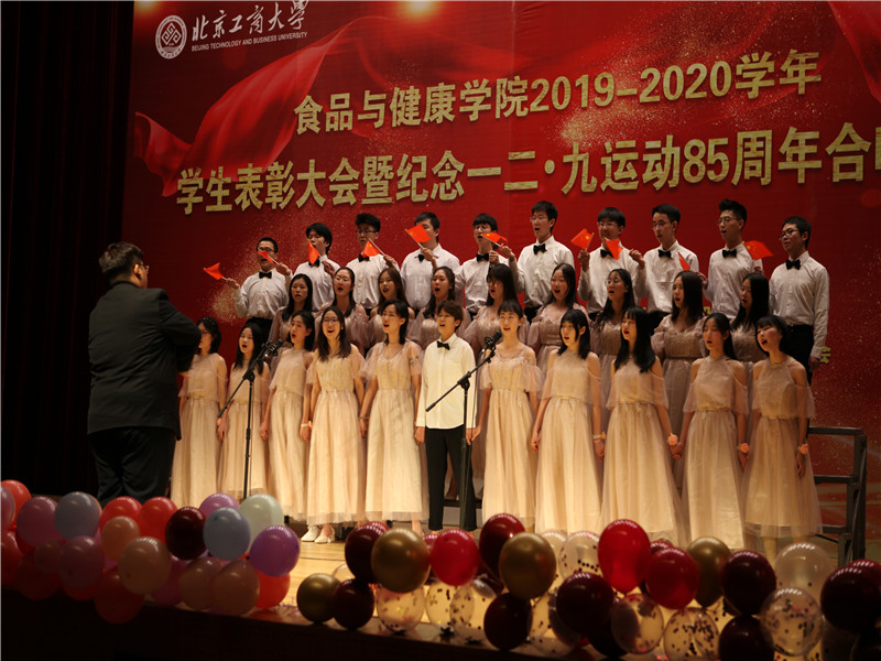 为纪念“一二·九”运动85周年,引导激励学生继承和弘扬爱国主义精神,深入学习贯彻习近平新时代中国特色社会主义思想,树立责任意识,争做先进优秀,增强集体凝聚力和荣誉感,12月17日,食品与健康学院在阜成路校区举办了“忆峥嵘岁月 担时代使命”2019—2020学年学生表彰大会暨纪念“一二·九”运动85周年合唱比赛。