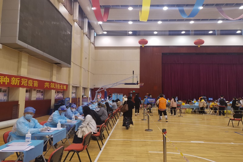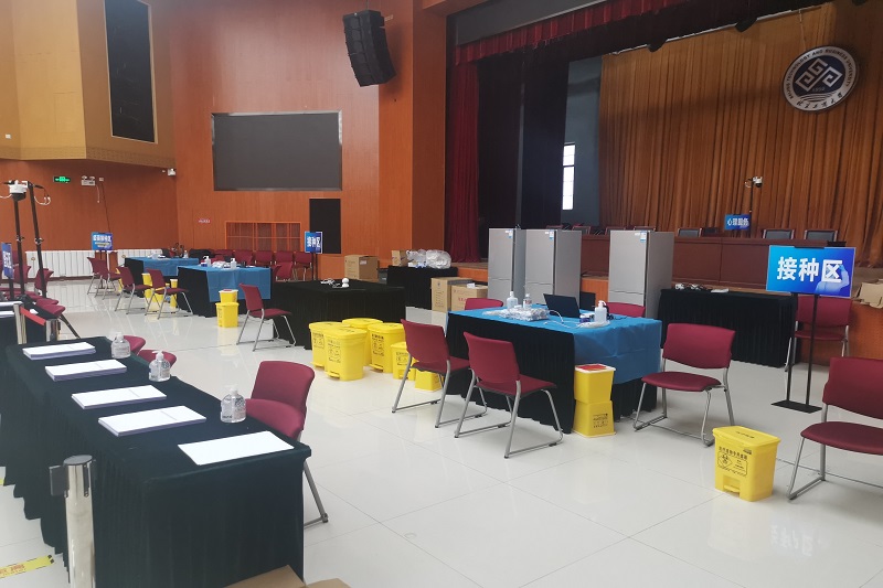 疫苗接种前,公共事务处按照接种规范和流程,落实两校区测温区、等待区、登记区、留观区及应急处置区的场地布置;做好接种现场的消杀及保洁;备好疫苗接种保障所需的物资储备;做好接种场地的电力保障以及相关工作人员的餐饮保障;建立师生接种疫苗后出现不良反应的救治机制;与区医疗救治专家组进行对接,处理突发紧急救治事件,全力以赴做好各项服务保障工作。