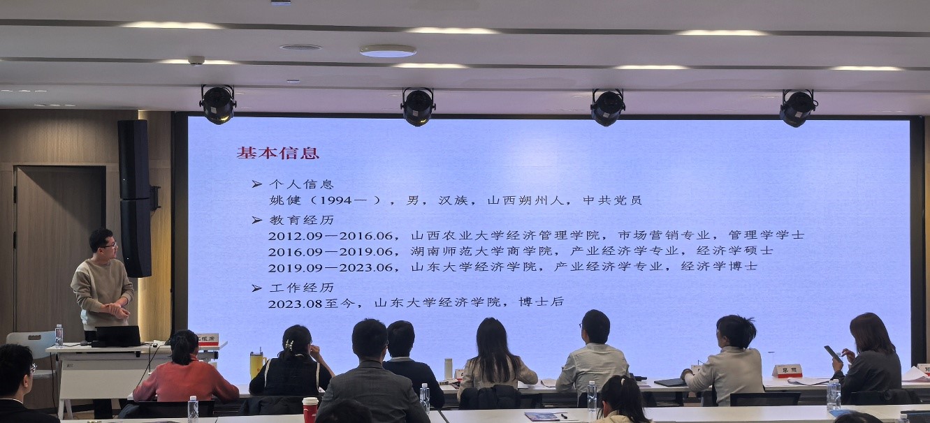 山东大学经济学院博士后姚健报告了论文“户籍身份转换与中国家庭消费流动性”。论文系统分析了中国家庭消费流动性的特征和演变趋势,考察了户籍身份转换对家庭消费流动性的影响效果和作用机制,为理解中国式现代化进程中放松户籍制度约束的消费提振效应提供了新的微观证据。
