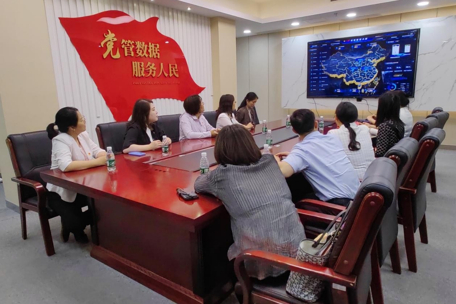 人民网·人民数据孔凡菊对北京工商大学一行的到来表示热烈欢迎,并详细介绍了人民数据作为人民日报社、人民网旗下“党管数据”核心平台的战略定位。她指出,人民数据以“数据国家队,数字经济高端智库”为发展目标,在党建信息化、政务数据治理、舆情分析等领域积累了丰富经验。在展厅参观环节,党员们通过视频短片、案例讲解及平台演示,系统了解了人民数据在产业数字化转型、社会治理智能化中的创新成果。