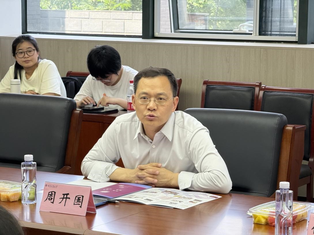 詹新宇主持学科建设交流环节。他代表学院对周开国院长一行莅临我院交流指导表示热烈欢迎,并从学院发展情况、学科建设、师资力量、学生培养、科研成果及社会服务方面汇报了学校经济学院学科建设情况。