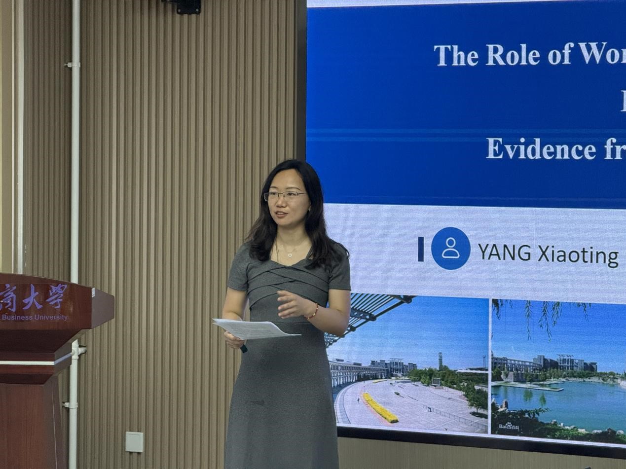 杨晓婷副教授报告了论文“The Role of Women’s bargaining power in the Allocation of Household Financial Assets: Evidence from Private Lending of CHFS Database”。文章基于CHFS数据,构建女性议价能力指标,采用IV-Probit模型解决内生性,研究了女性议价能力如何影响家庭金融资产配置的问题。研究结论为:女性议价能力提升显著增加家庭风险资产配置(如股票、基金)和民间借贷参与率,但对房产投资存在挤出效应。焦安琪副教授点评建议,区分城乡/教育水平异质性、验证内生性工具变量并补充机制检验。