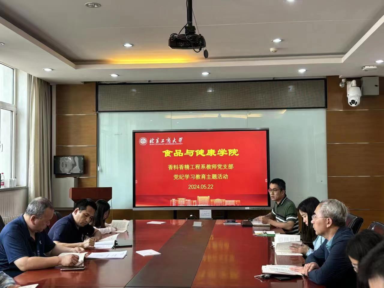 为进一步深化党员教师党纪意识,增强学纪、知纪、明纪、守纪的底线思维,5月22日,食品与健康学院香料香精工程系教师党支部开展党纪学习教育主题活动,集中时间原原本本学习《中国共产党纪律处分条例》。此次活动旨在通过深入学习《条例》,使党员教师充分认识到严明党的纪律的重要性,自觉做到守纪律、讲规矩,提升党支部的凝聚力和战斗力。