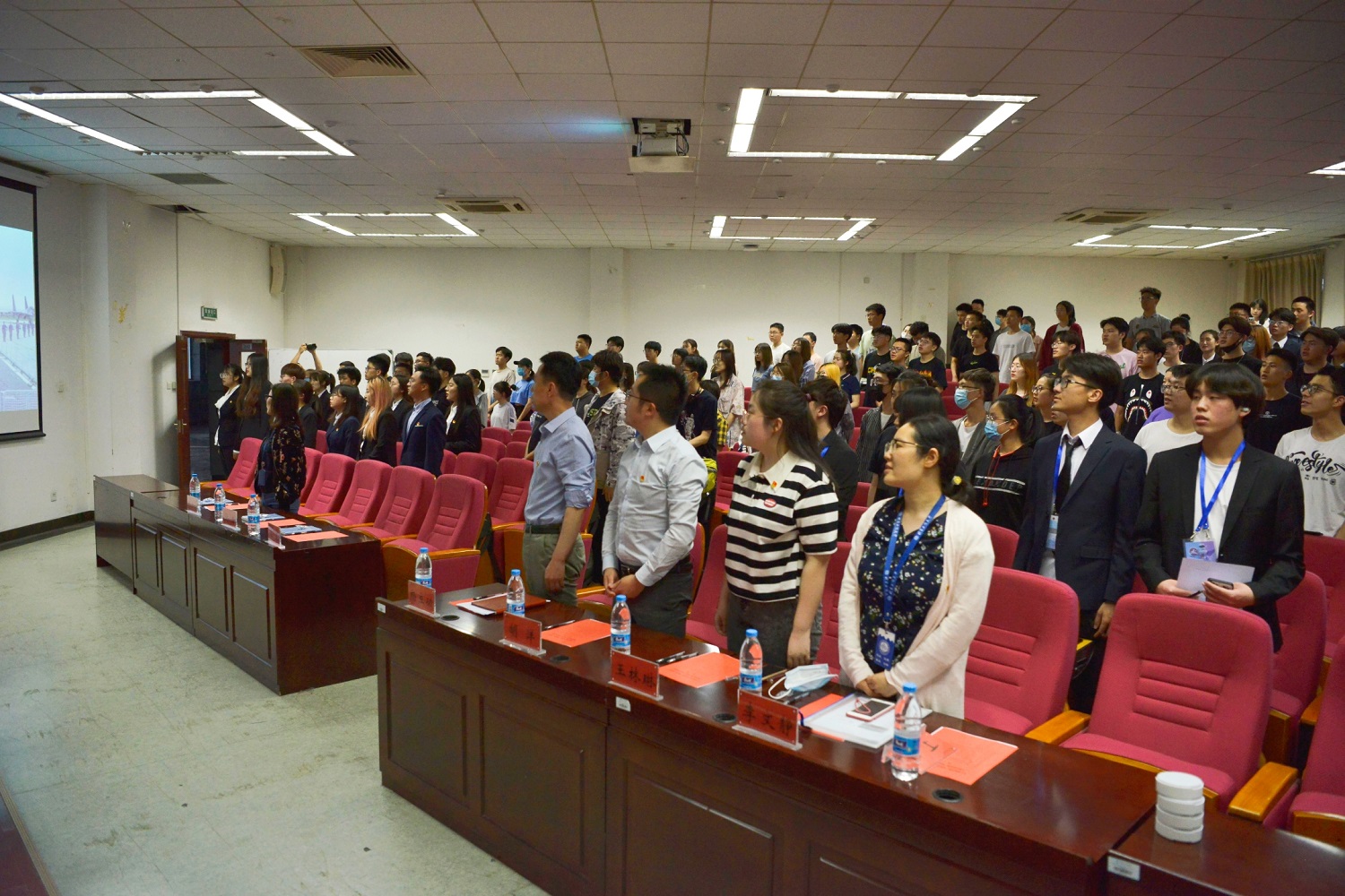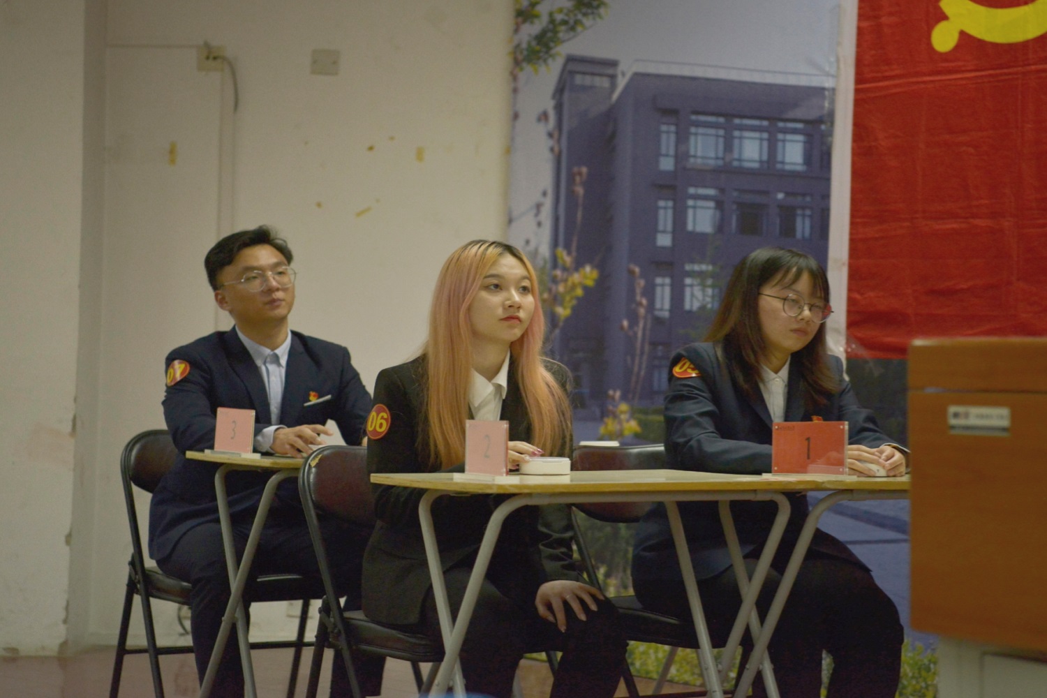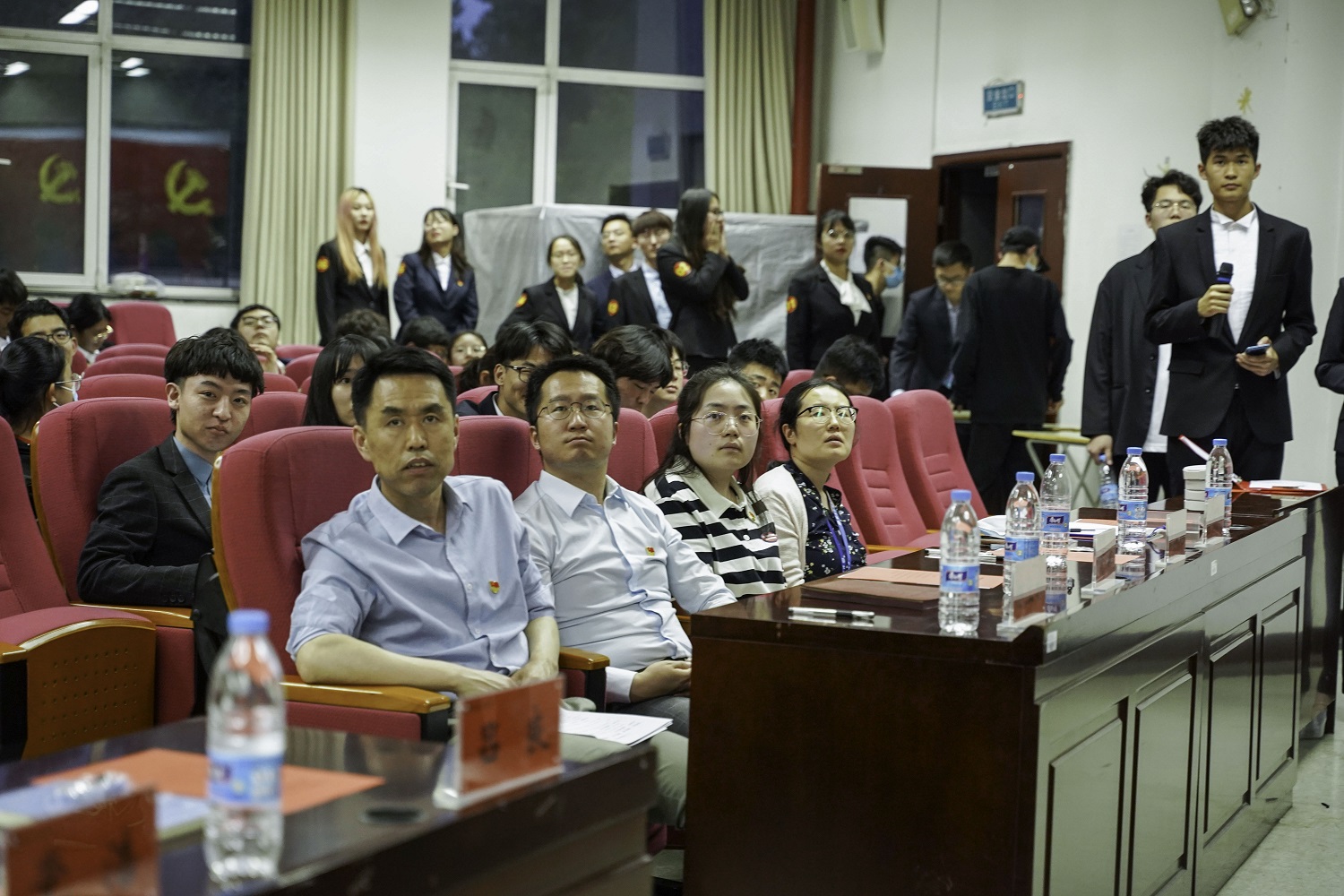 朗诵的同学身着正装、站姿挺拔,满含对党和祖国深深的热爱,将自己最饱满的热情投入到朗诵的诗歌当中。随着诗句的起伏波折,同学们的声音也抑扬顿挫,声情并茂,时而铿锵有力,时而婉转悠扬,歌颂那最为和谐优美而又锋锐有力的赞歌,将曲曲赞歌赠予我们伟大的党和祖国,给同学们带来了一场听觉的盛宴,台下发出阵阵热烈的掌声。