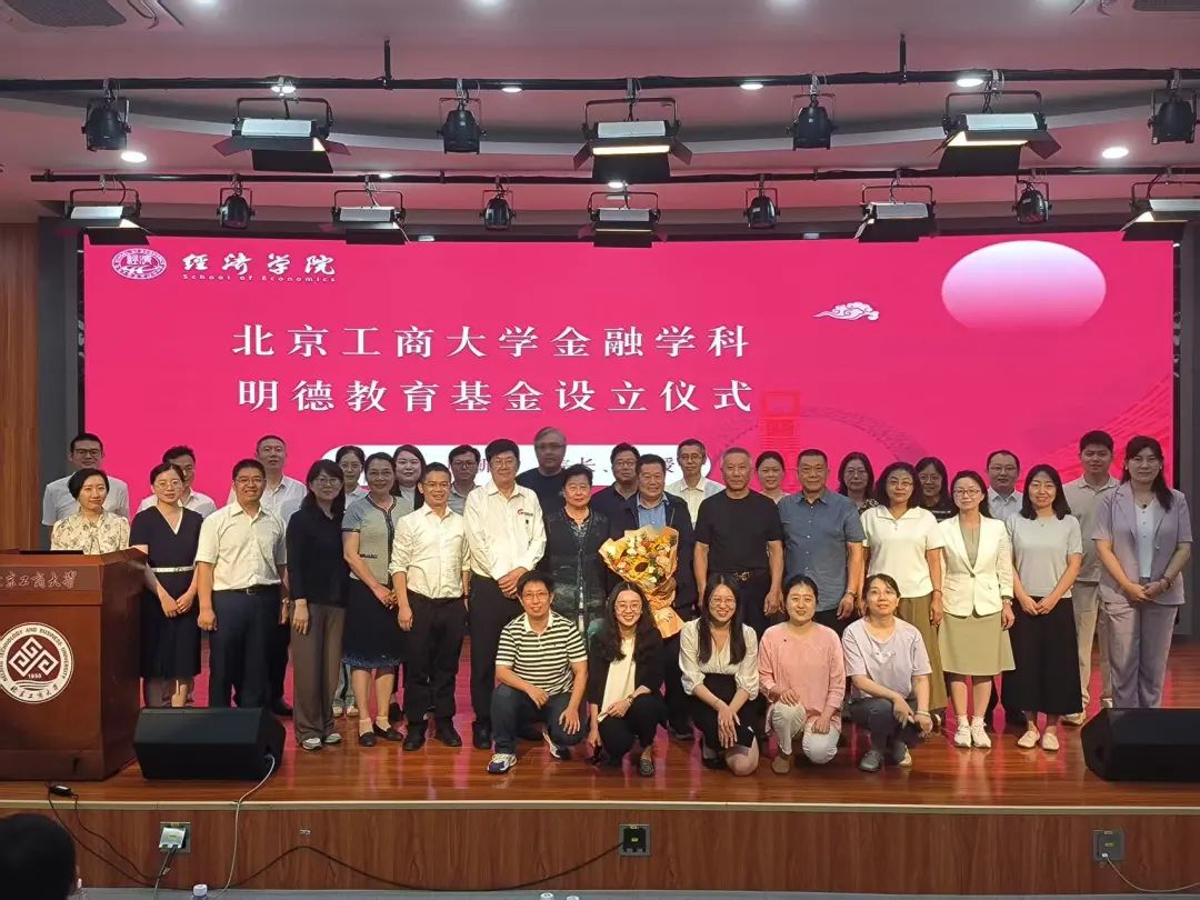 6月15日下午,北京工商大学金融学科明德教育基金成立仪式暨金融人才培养与金融强国建设研讨会在良乡校区求真学堂举办。北京工商大学原副校长、金融校友联谊会荣誉会长谢志华,经济学院执行院长詹新宇,党委副书记李艳春,副院长许敬轩、马雪娇和牛晓燕,金融系学科带头人杨德勇教授,荣退教师秦艳梅教授,系主任李飞教授,校友代表大志(北京)投资管理有限公司董事长李志生、金港控股有限公司董事长兼首席执行官叶明钦,中国工商银行总行资产负债处处长郑吉凯,中信证券财富委执行总经理初晓宁,世元通达基金董事长陈美兴,特邀嘉宾中央民族大学经济学院副院长吴本健教授,经济学院金融系全体教师,各级毕业生代表和在校学生等180余人参加了会议。