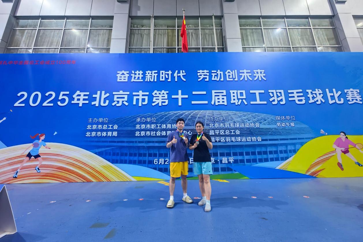6月28日,“奋进新时代 劳动创未来”2025年北京市第十二届职工羽毛球比赛于昌平区体育馆圆满落幕。在这场汇聚全市70余支基层职工代表队、600余名羽毛球爱好者的盛大赛事中,我校教师李鑫楠、铁春元勇夺混合双打第六名,一举刷新我校在该项赛事中的历史最佳成绩。