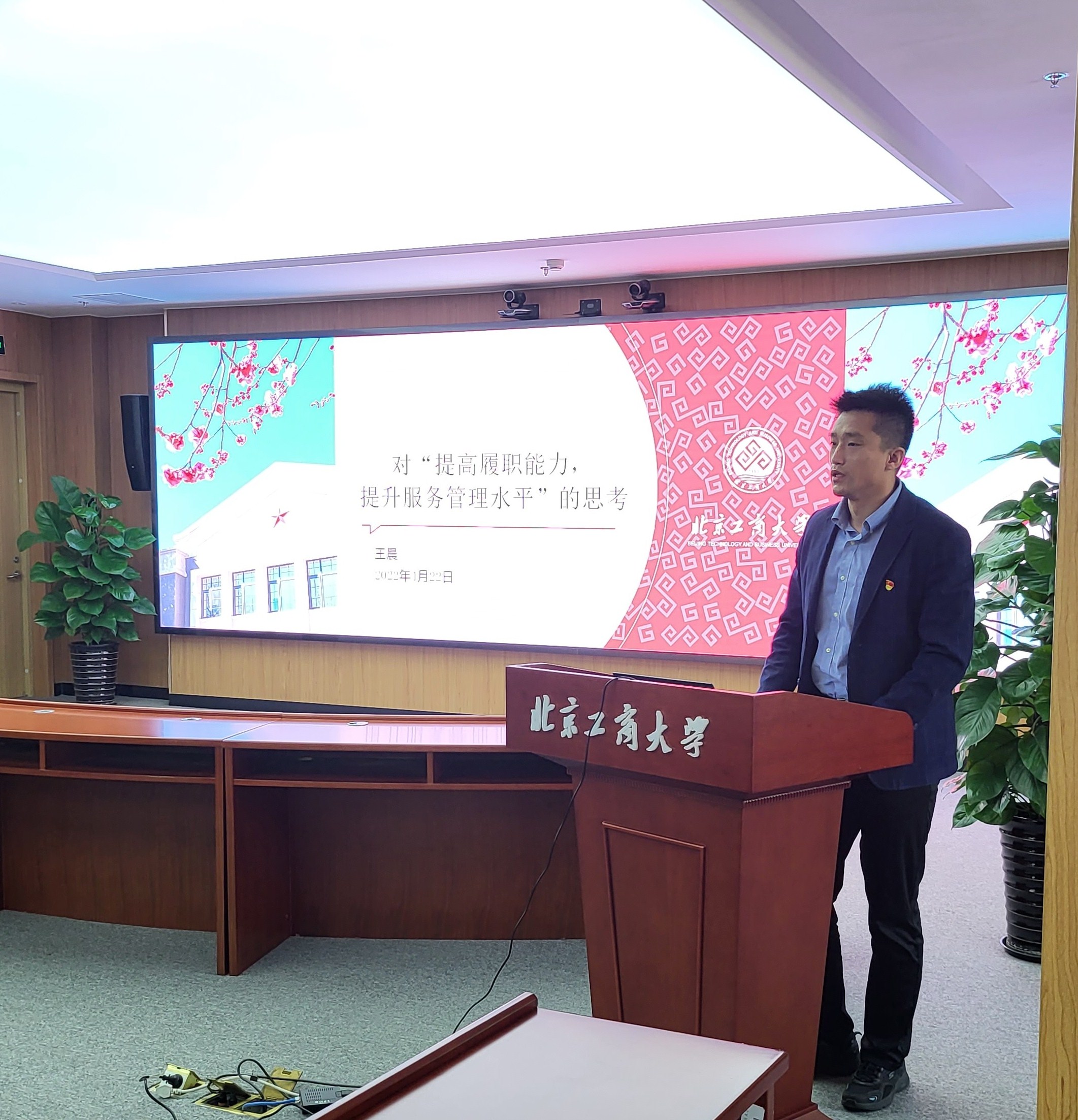学生处薛瓅回顾了参加首届北京高校系统管理岗位青年教职工职业能力竞赛的筹备过程和比赛过程,提炼出高校青年教职工在统筹协调能力、文字与媒介表达能力、团队配合能力和创新能力等四方面的重点要求,指出机关管理人员要在大局意识、追求卓越、学无止境方面不断进步。科学研究院王沈南从3月开展的“机关管理人员能力提升专题网络培训班”中选取了5门课程与大家进行交流。他结合学报编辑、教学科研和管理能力三个方面,旁征博引,侃侃而谈,对做好高校意识形态工作提出独到的见解和有益的提醒。发展规划处韩笑分享了网络培训的收获,并着重介绍了学校建设“多科性具有商科、轻工和食品特色的高水平研究型大学”的办学定位、“理工+经管”的工商发展新模式、建设四个“高精尖创新中心”的重大举措以及综合改革等重要内容,号召机关党员“浩荡东风起,奋斗新征程”。纪检监察综合室王晨从“践行党的伟大精神,切实增强政治‘三力’;强化作风建设,全面提升服务师生效能;提升履职能力,成为业务工作的行家里手”三个方面提出了个人思考,阐释了机关管理人员应具备的“精、清、请”三个能力,即精通政策的能力、摸清情况的能力、做好请示的能力。团委王若冰回顾了参加冬奥会和冬残奥会服务保障的难忘经历,深情讲述了我校志愿者团队无怨无悔、服务奉献的动人故事,提炼出坚持“精心、细心、贴心、暖心、安心、放心”的奥运服务保障模式。她谈到,“胸怀大局,自信开放、迎难而上、追求卓越、共创未来”的北京冬奥精神,定会引领广大青年通知踔厉奋发、笃行不怠,以更加坚定的自信、更加坚决的勇气,砥砺再出发,一起向未来。