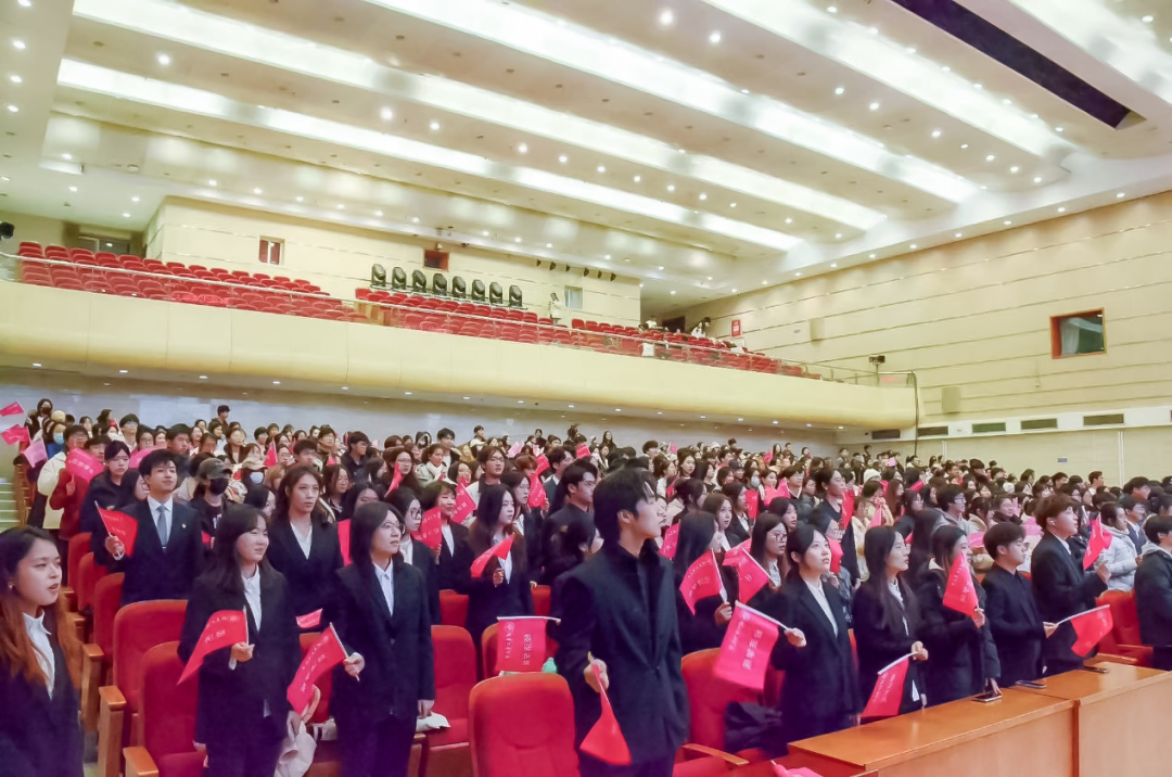 最后,全体领导老师和同学们全体起立,共同合唱北京工商大学校歌,用歌声表达对学校的热爱和对未来的期许。