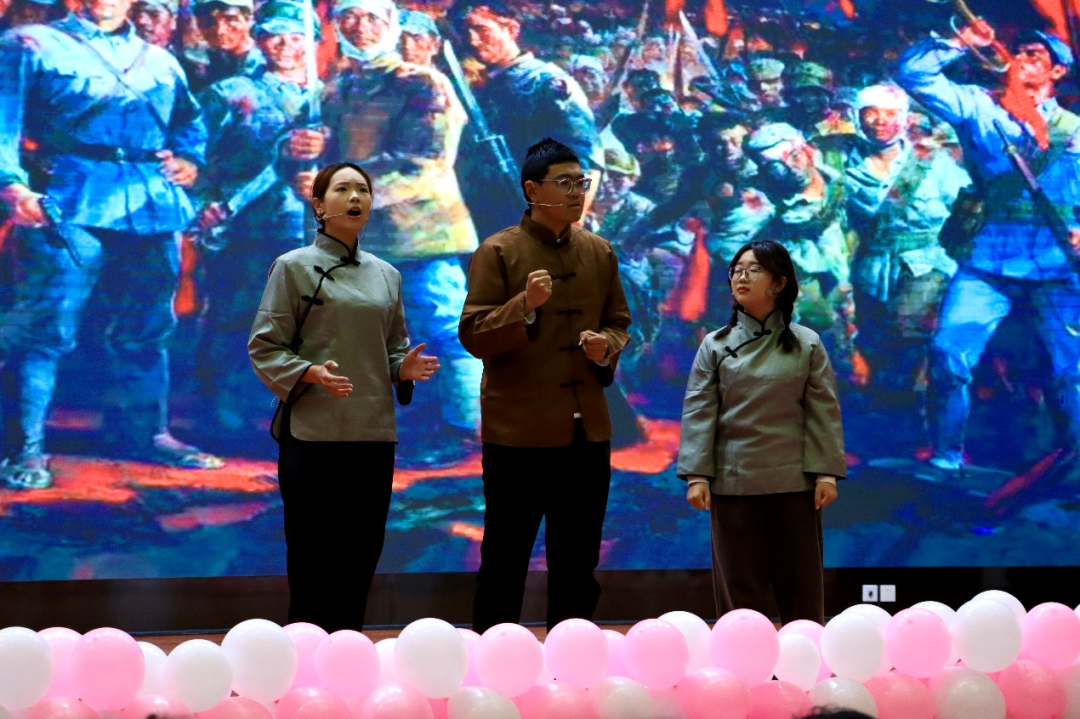 为深入学习贯彻习近平新时代中国特色社会主义思想,经济学院党委紧紧围绕党的二十届三中全会精神引领广大青年党员“读原著、学原文、悟原理”,真正做到深学、细悟、笃行,巧妙地将党建文化与艺术创新融合,创作了三个篇章《重温解放前的家国春秋》、《探索改革开放的伟大进程》、《凝聚新时代的磅礴力量》,细腻地描绘新中国的建设与改革,弘扬伟大建党精神,为广大党员和群众呈现了一场深刻而富有文化内涵的视听盛宴。