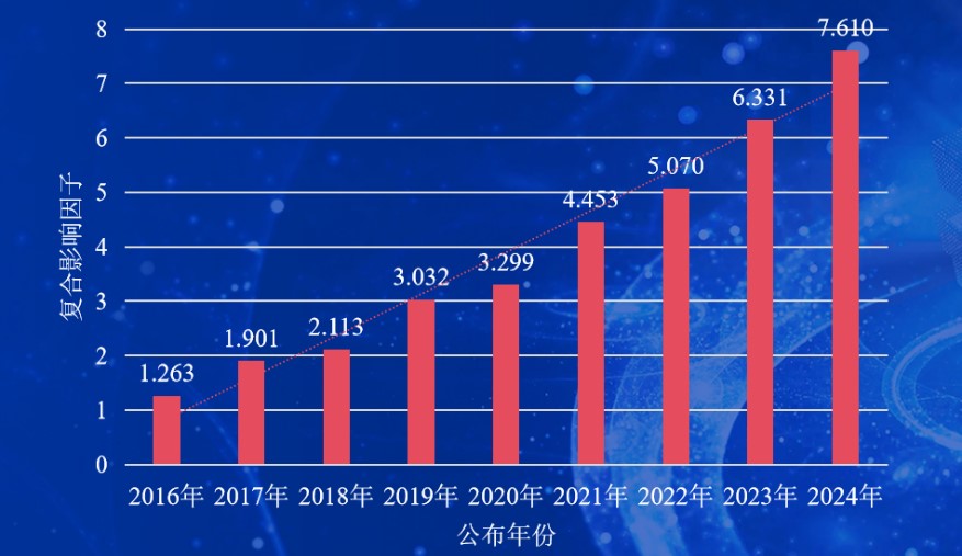 近日,《中国学术期刊(光盘版)》电子杂志社有限公司与中国科学文献计量评价研究中心联合发布《中国学术期刊影响因子年报》(人文社会科学・2024版),《北京工商大学学报(社会科学版)》2023年度的各项影响力指标再创历史新高,复合影响因子首次突破7.0,达到7.610,较上一年度的6.331提升了1.279,增幅达到20.2%。