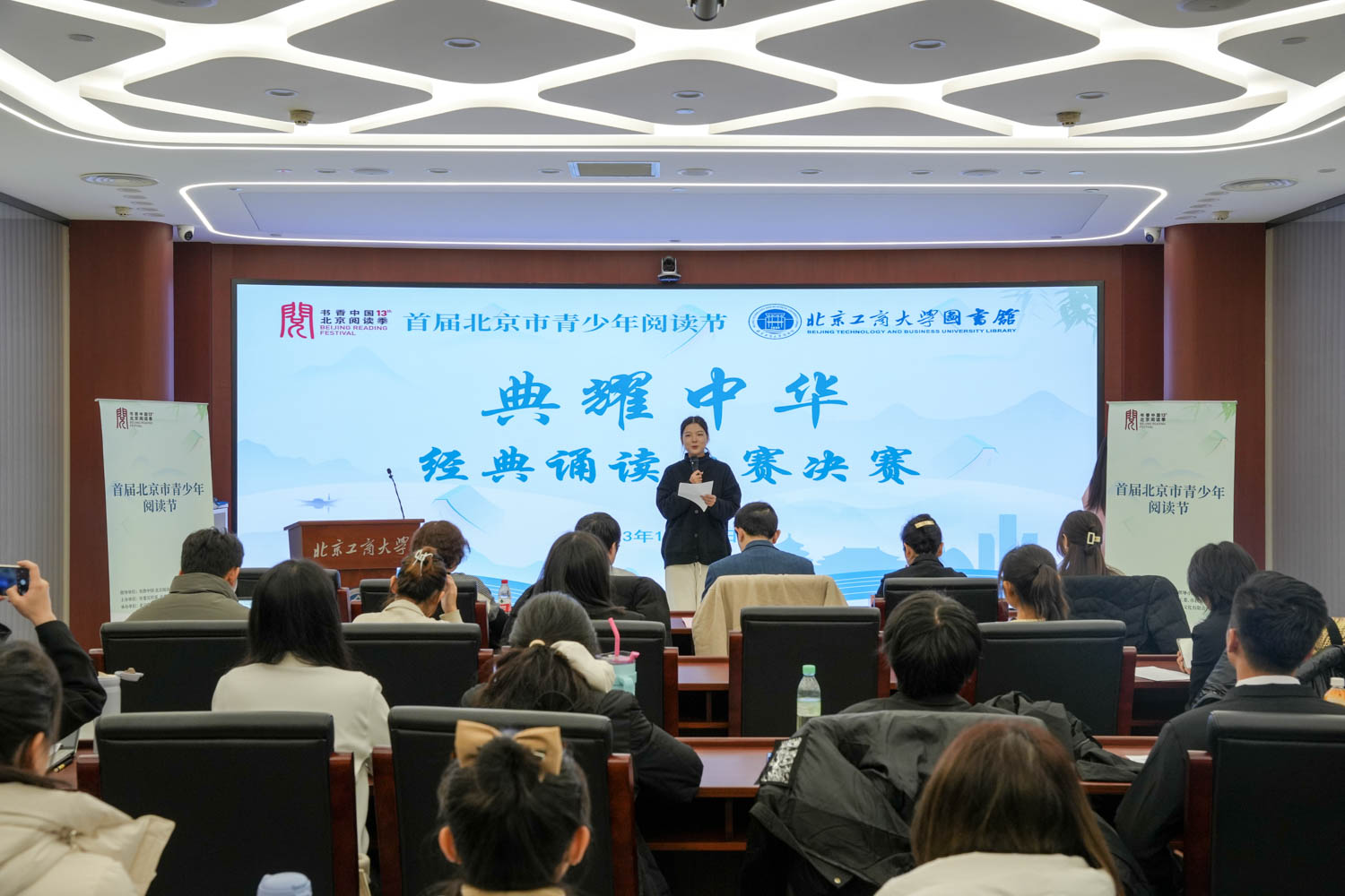 11月15日,由图书馆和书香中国·北京阅读季青少年阅读节联合举办的“典耀中华”朗诵大赛在良乡主校区图书馆举行。北京电台主任播音员李湘麓担任评委,图书馆馆长马春晖作总结讲话。
