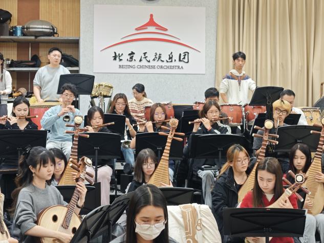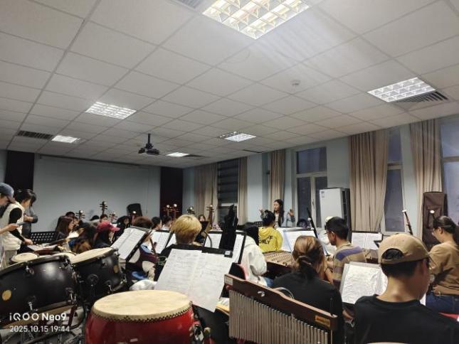 在为期数月共建中,民乐团的学生们经历了系统的、分阶段的艺术训练:10月,北京民族乐团指挥家深入校园,开展一对一指导与分声部排练,为学生们奠定了扎实的演奏基础;11月,我校民乐团携手北京民族乐团在“融·雅”校城融合音乐会中合奏经典曲目,实现了从课堂排练到舞台呈现的跨越;最后,在北京民族文化宫,双方携手呈现了一场高水平的民族音乐盛会,展示了学生们日益成熟的演奏技艺与艺术感染力,标志着共建成果从校园走向社会,充分彰显了专业引领与舞台实践相结合的艺术育人成效。