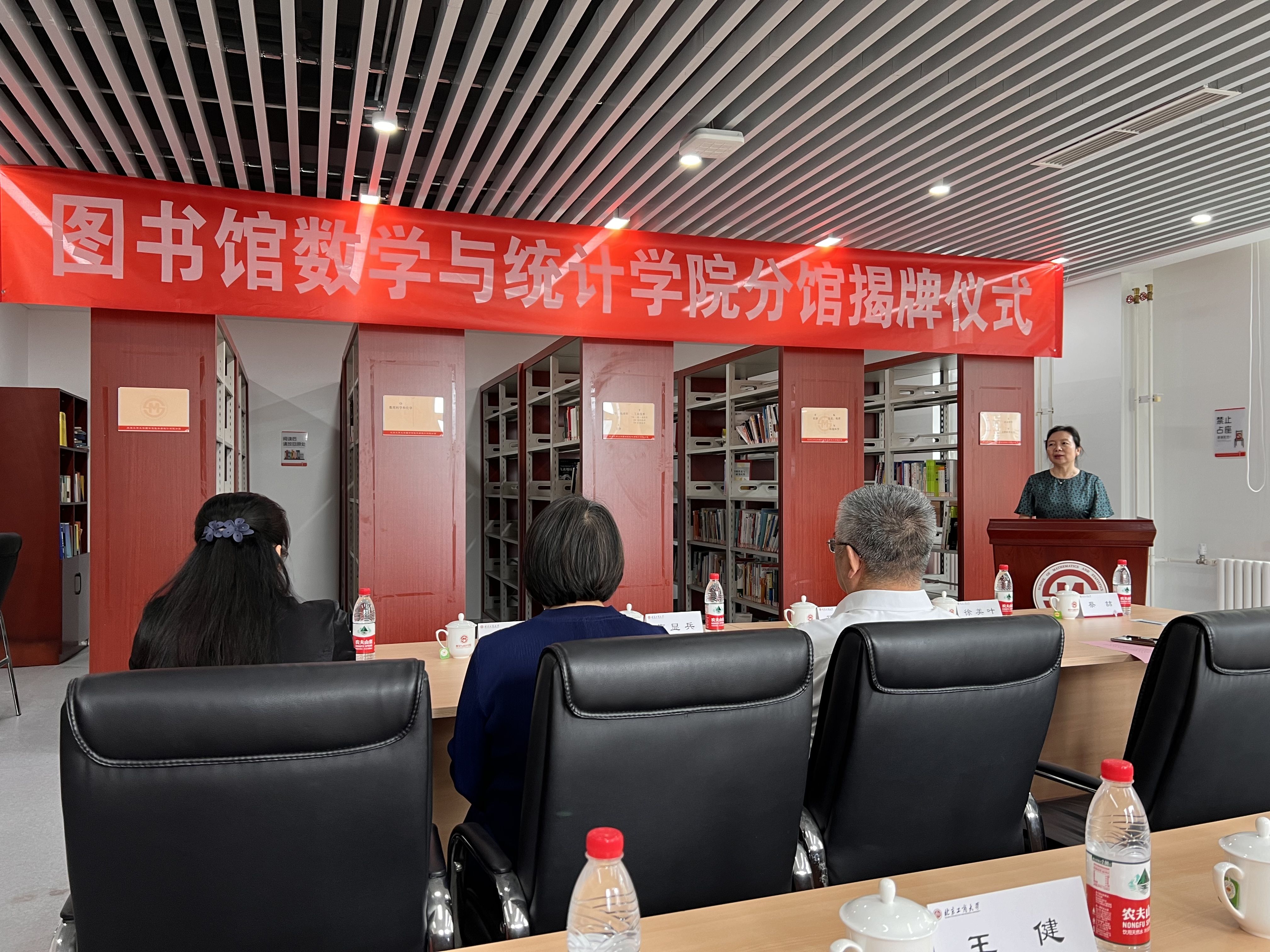 马春晖在随后的讲话中表达了对数学与统计学院分馆建设的赞赏和支持。她提到,作为全校首个落成运营的图书馆分馆,数学与统计学院对图书馆分馆的建设投入了大量的心血,并配备了一流的设备和技术。未来图书馆将全力配合学院,提供有求必应、有诉必达的服务,最大程度地保障分馆的正常运行,持续做好为全校师生提供优渥阅读环境的目标。