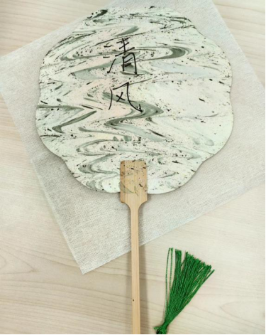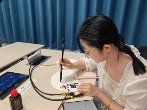 在社团社员的的指导下,在场学生党员分工协作,分组制作漆扇。“修身”“自省”“廉洁”“明德”……大家纷纷用笔墨在空白扇子上书写所思所感所愿,继而在水漆中或平入、或旋转、或轻摇,铺在纸上静待晾干,一柄柄典雅明丽、独一无二的漆扇制作完成,握在手中,阵阵清风在盛夏时节拂面而来。