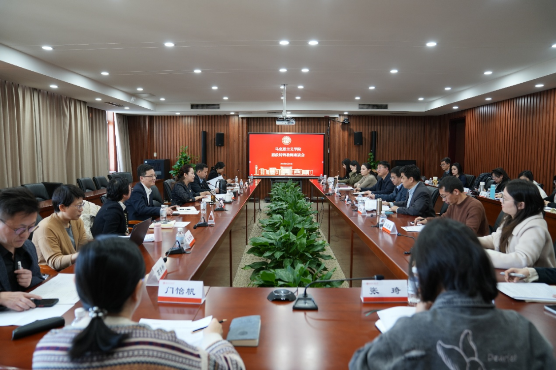 2019年3月18日,习近平总书记主持召开学校思想政治理论课教师座谈会并发表重要讲话,为做好新时代思政课建设指明了发展方向、提供了根本遵循。为深入贯彻落实习近平总书记在学校思想政治理论课教师座谈会上的重要讲话精神,贯彻落实《关于进一步推进北京高校马克思主义学院高质量发展的若干举措》,进一步加强新时代马克思主义学院建设,提升思政课教师队伍整体素质,3月18日下午,学校在良乡主校区行政楼226会议室召开校内选聘思政课教师座谈会。校党委常委、副校长徐丹丹,党委常委、副校长寇红江,党委常委、党委宣传部部长倪国华,教务处处长王鲁娜,马克思主义学院院长赵春丽,人事处副处长王倩,教师发展中心主任王鑫鑫,马克思主义学院教师代表出席会议,马克思主义学院全体校内选聘教师参加座谈。