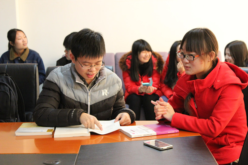 同学们积极主动地向老师们请教,段大高、黄今慧老师亲切地给同学们传授复习方法;叶红老师拿来教材一章一章地给同学们讲解;辅导员们苦口婆心地给每位同学定目标下任务。学优生和学困生已经形成了深厚的友谊,在自由辅导阶段拿出纸笔认真研讨,不同学习小组之间交流经验,互相学习。