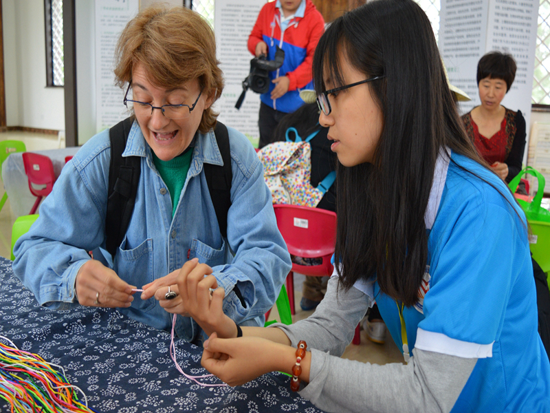 外语志愿者分为六组,全程组织参加采访摄制组、农耕体验区、绘画手工区、亲子寻宝区、特色市集区和主题互动区的各类工作。摄影组志愿者与十余家媒体记者为摄像师、记者和外宾采访提供语言传译服务;农耕体验区的志愿者用英语向外国家庭讲解中国传统农耕文化,带领指导他们体验中国农耕乐趣;绘画手工区的爱心志愿者帮助中外小朋友装饰鸟巢、体验民俗手工,他们细致耐心的服务得到小朋友和家长们的一致好评;寻宝区的志愿者在桃树林中带领外国小朋友们藏宝寻宝,寻找惊喜中体验欢乐;特产市集区的志愿者协助房山各个村镇的巧手工艺者们与外宾沟通,介绍各种特色产品;主题互动区的志愿者则用英语介绍国际日和中国二十四节气等文化知识,使外宾产生浓厚兴趣,不时驻足倾听。英语121班的王海洋说:“很感谢学校和学院给我们提供平台参加国际日志愿者服务工作,很多外国家庭都对中国文化很感兴趣,能够为他们多介绍一些中国文化知识,我很有成就感。”