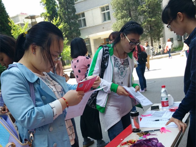 5月12日、13日,校研会青志协举办了以“粉红丝带·五月关爱”为主题的系列活动。活动共分为乳房健康知识宣传和健康义诊两部分。 在活动宣传中,来咨询的同学络绎不绝,工作人员一边分发宣传手册,一边指导报名参加义诊活动。同学们很积极,纷纷前来报名咨询,大家的热情还吸引了来自哈萨克斯坦和非洲地区的朋友。宣传结束后,协会成员还专门为打印店、小卖部、书店的阿姨和楼管阿姨送去了义诊邀请。每天都为学业生活忙碌的我们,有机会也不要忘记停下脚步多多关心自己的身体。 义诊现场,邀请到了海军总医院王海龙主任、李易霞主任和校医院王彤医生为我校师生进行女性健康义诊。三位医生很耐心地微笑倾听并回答了前来看诊的每一个同学的问题。医生们的热心和真诚令大家感动,在短短的三个小时里就有84位同学前来咨询问诊,同学们对我们本次义诊活动相当满意,并夸赞说很用心很有意义。 本次活动秉着青志协“让志愿融入生活”的理念宗旨,不仅鼓励全校师生多多关注身体健康,更是用实际行动展现了奉献、友爱的志愿者精神,激发了同学们从事公益的热情和积极性。