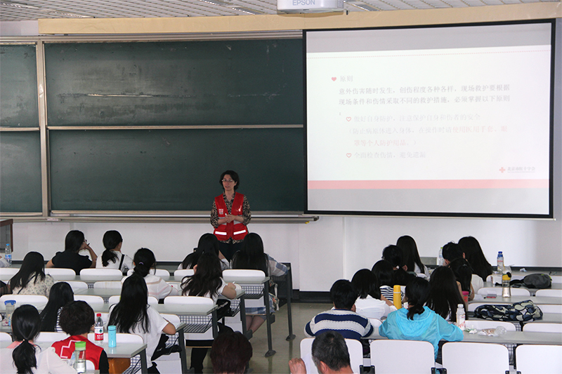 5月16、17日,我校红十字会开展了以“急救,为生命护航”为主题的急救培训活动。本次活动邀请了北京市红十字会的杨沙娜老师以及房山区红十字会的六位老师为同学们进行相关知识的讲解及技能的操作示范。